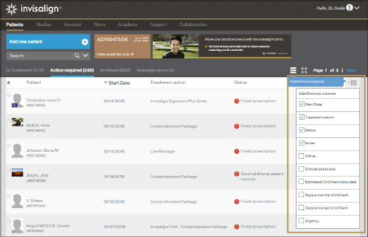 Add or remove columns for the flexibility to choose which columns to display on your Patient